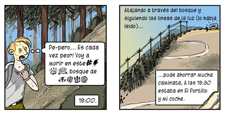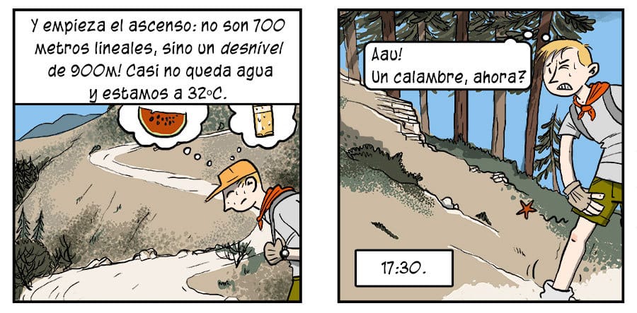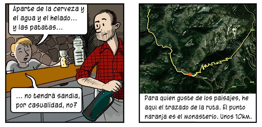 Con comida y agua no hay que temer el monumental bajón que me dio a la vuelta, pero tampoco creo que se tarde mucho menos. Cuando los buitres acechaban no habré estado más de media hora en el suelo -también me torturaban los tábanos, así que no podía estar quieto- pero desde luego lo que cuenta no es el tiempo sino lo bonito de aquella sierra. La región da para muchas excursiones interesantes, y es bastante tranquila y solitaria.